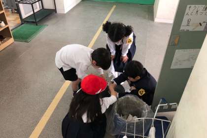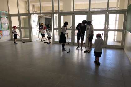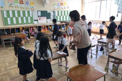 一年生は、今日から6年生の子どもたち手伝ってもらって、自分たちで掃除をし始めました。