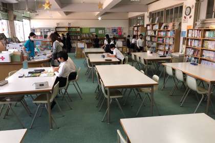 図書委員会です。委員会おすす本紹介カードを作りました。