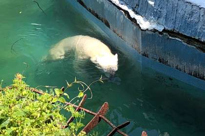なかなか現れなかったシロクマ君が、ようやく見えて興味津々です。