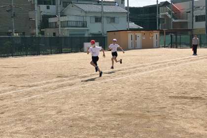 体力テストで、50m走をしています。
