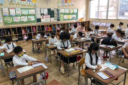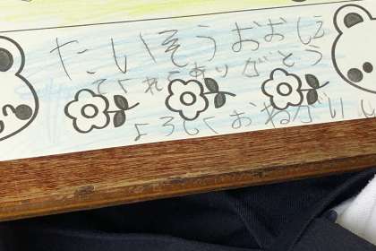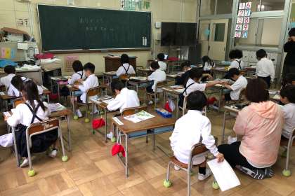 たてわり班内の6年生への感謝の気持ちを表忘れカードを書きました。