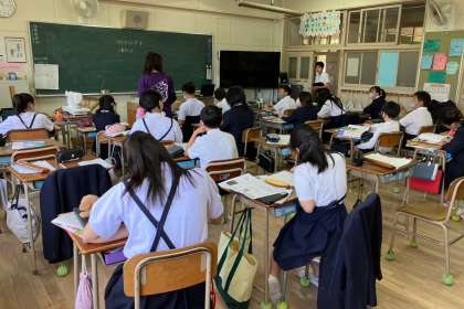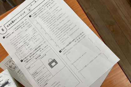 エコバッグの制作の復習で、ワークシートをしました。