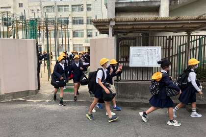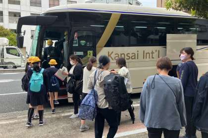 おはようございます。先ほど、7時29分出発しました。学校では、子どもたちの司会進行で、出発式を行いました。保護者の皆様におかれましては、早朝よりのお見送りありがとうございました。少しお寂しい思いをさせますが、帰ってきた時のお土産話をお待ちください。それでは、行ってきます。