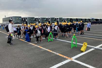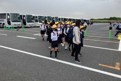 ナガシマスパーランド到着です。子どもたちは、事前に計画を立てたコースを班行動で動いていきます。