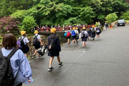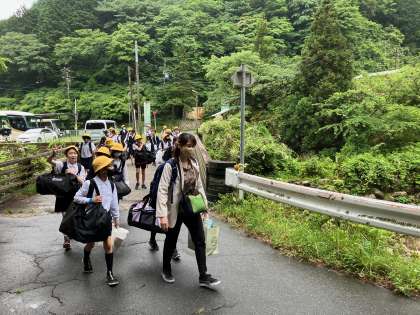 宿舎の駐車場に到着です。ここから少し歩きます。先ほどまでどしゃ降りだったそうですが、奇跡的に雨があがりました。