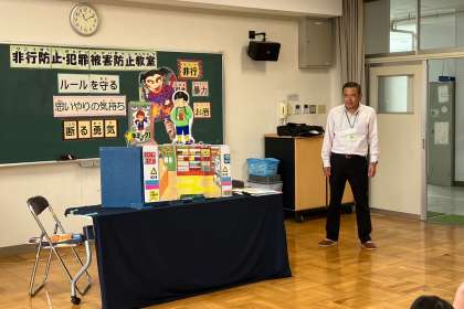 大阪府庁と梅田サポートセンターより講師の方をお招きして、5年生の子どもたちに対して、非行を防止するお話をしてくださいました。