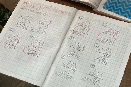 少人数授業形態で、複雑な小数のかけ算の筆算を学習しました。