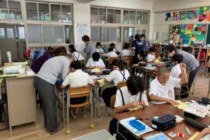 本日も、地域の女性部のみなさんが来てくださり、裁縫の支援をしてくださいました。