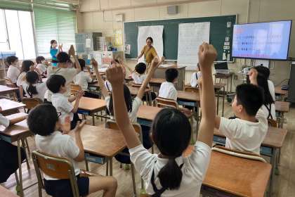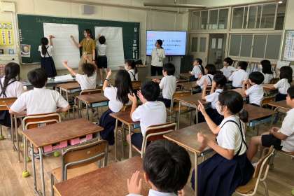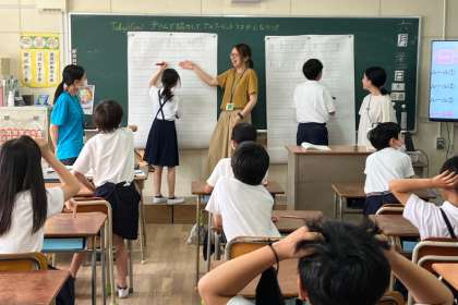 二つに分かれて、A〜Zまでのローマ字をリレー方式で書いていくゲームをしました。相当な盛り上がりでした。