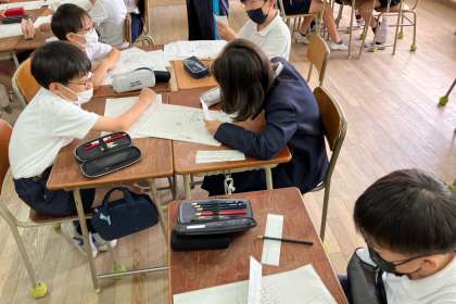 SDG sについて、プレの研究授業をしました。子どもたちは、班ごとに活発な意見交流ができていました。