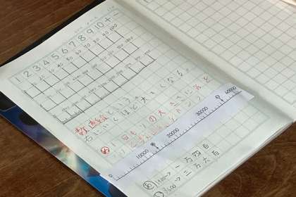 一眼盛りの大きさに気をつけて、数直線を書く学習をしました。