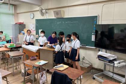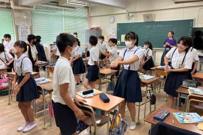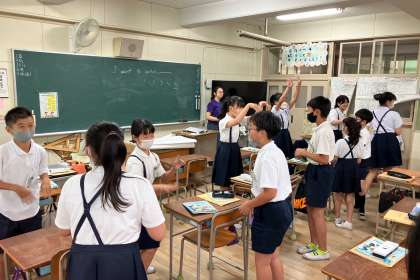 C-NETの先生が教科書から選んだスポーツ種目を、ジェスチャーで伝えていくゲームをしました。