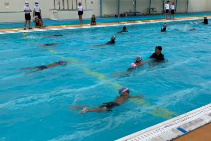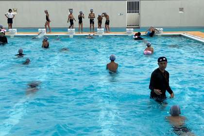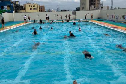 今日は、カエル足の練習をしました。