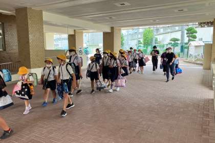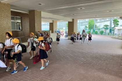 台風を想定した避難訓練と地区児童会を実施しました。そのなかで、保護者の皆さんからのお話や登校時の班の反省などをしました。その後、保護者のみなさんや教員と共に、集団下校をしました。