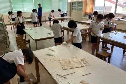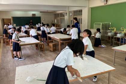 改めて鋸引きの練習をしたい子たちを中心に、1・2組合同で練習をしました。