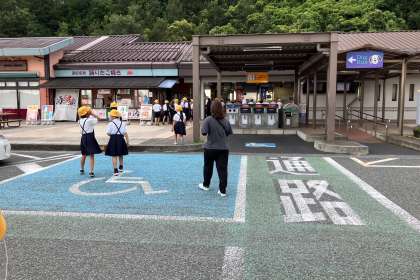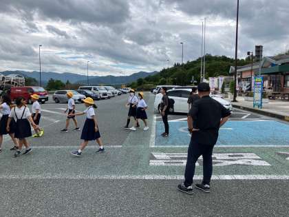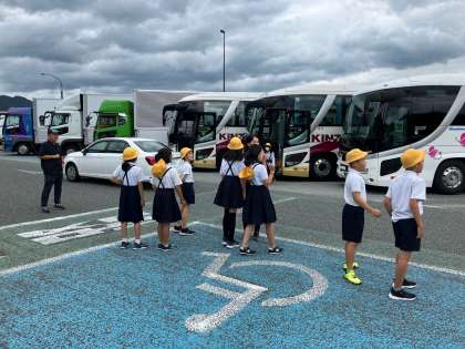 11時25分、最初のトイレ休憩場所の西紀SAに到着しました。特に、バス酔いの子もなく、みんな元気です。バスの中では、バスレクで楽しく過ごしています。