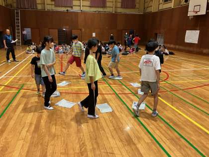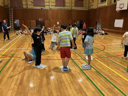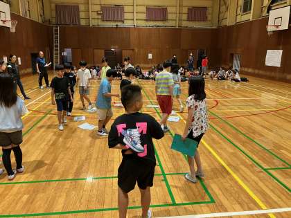 新聞紙を椅子に見立てて、椅子取りゲームをしました。