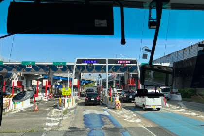 中国自動車道池田を出ました。学校到着は、4時を回るかと思います。