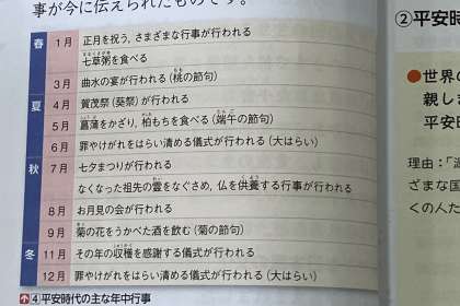 平安時代の年中行事で、今に伝えられているものについて学習しました。