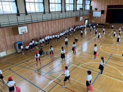 今日は、4年生の子どもたちが、応援団の練習を見学しました。