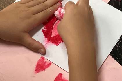 ティッシュを使って、ぼかしの図柄を描いています。