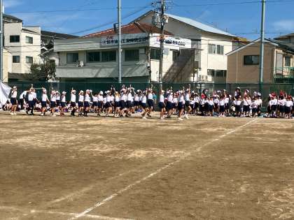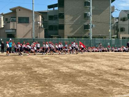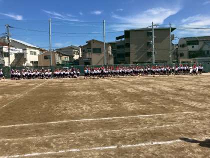 全体練習として、開会式、体操、応援練習などを行いました。