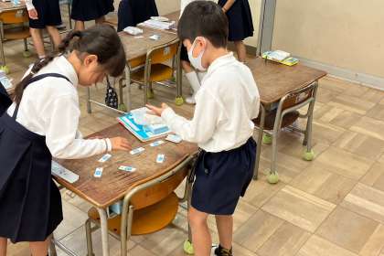先生が言葉にした数字になる足し算の式は、どれかを見つける学習をしました。