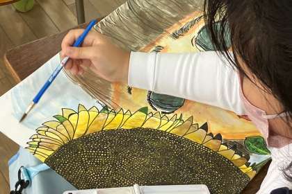 先日から取り組んでいる私とひまわりの背景に、色を塗っていきました。