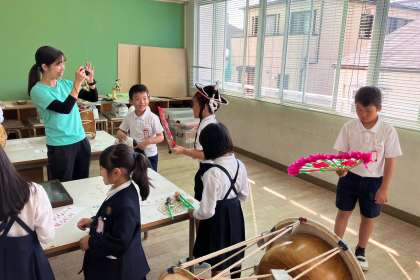 今週は、身近な国のこのを知ろうという週間だったので、展示してあるものを見たり、触れたりしました。