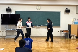 東淀川警察署より警察官の方にお越しいぢき、不審者対応の研修をしました。