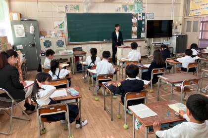 国際理解教育について、大学の先生におこしいただいて、おすすめの給食はなあにという主題で、研究授業をしました。