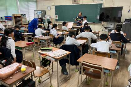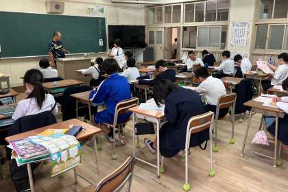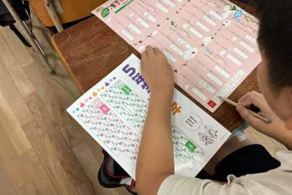 切り絵が完成した子たちは、5年生で習得すべき漢字を学習しました。