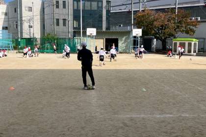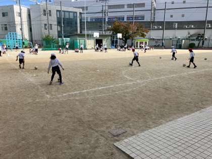 一定の距離について、ボールをドリブルしながら行き来ました。