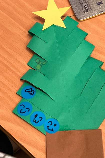 クラマスツリーを作りました。みんな、思い思いのデザインを施したツリーになりました。