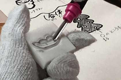 消しゴムにデザインをつけて彫りました。