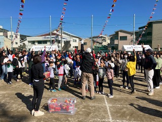 本日、9時より本校第二グランドにて、地域の運動会が開催されました。過去3年間は、コロナ禍で開催されていなかったようで、久しぶりの開催となり、大勢の地域の人たちが集うなか、本校の子どもたちも参加しました。