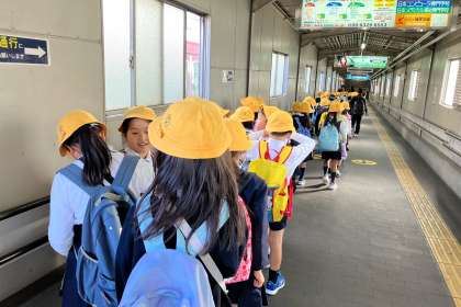 本日、2年生は、キッズプラザに行きました。往路は、先生からお金を渡されて、自分で切符を買い、改札に通して電車に乗って、現地までいきました。
