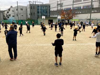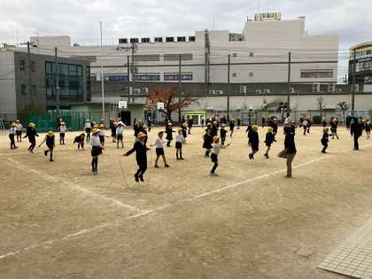 本日は、昼休憩の20分を利用して、3,4年生のなわとび運動をしました。