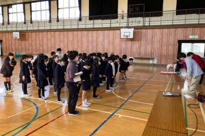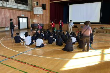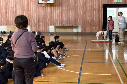 本日、東淀川区社会福祉協議会のスタッフの皆さんと盲導犬と生活をともにされたいるかたをお招きして、盲目の体験や盲導犬についてのお話を聞きました。