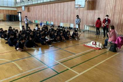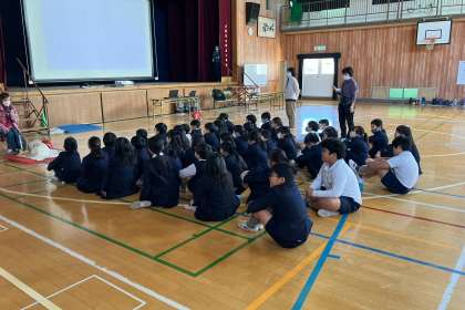 講師の先生が話されるている、盲導犬についての話をしっかり聞いています。