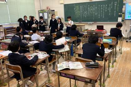 人間と自然の生き物が、共に生きる社会をつくるために、大切なことを考えました。授業の終わりに、その考えを発表しました。