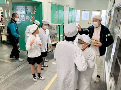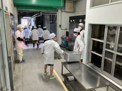 今日で、給食業務が終了します。日々、安全で温かくて美味しい給食を心がけられ、緊張感をもって調理されています。
