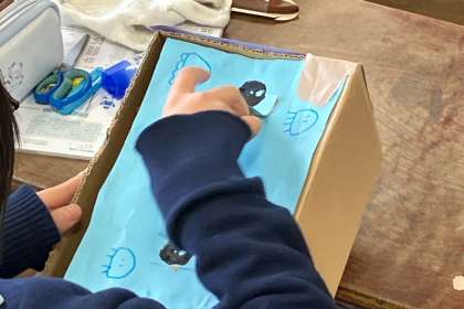 段ボールの箱を使って、自分たちで考えるものを制作しました。