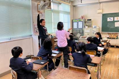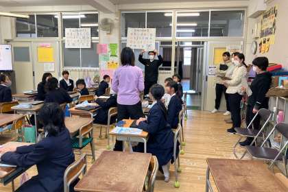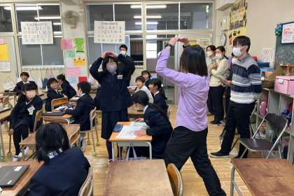 お気に入りの場所をお友だちに紹介する学習をしました。C−NETの先生がジェスチャーを交えて、お手本を見せてくださいました。