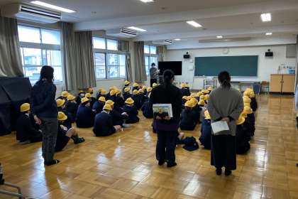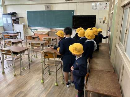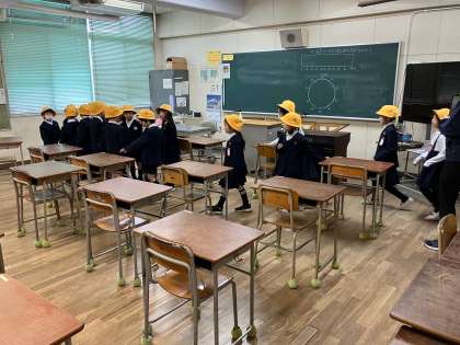 津波想定時、1・2・6年生の教室は1・2階にあるので、津波想定の訓練なので、3・4階に避難しました。