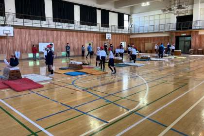 区の体育主任の先生方が集まり、5年生の体育科の授業を見に来られました。