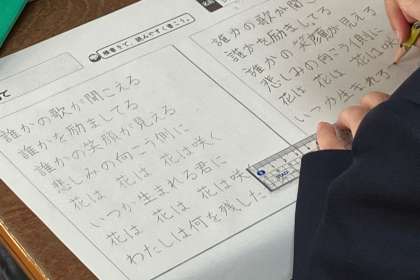 東日本大震災の動画を見た後、あと作られた歌の歌詞を書写しましとた。