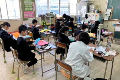 3年1組の教室で、空気検査をしました。とても、良好だったそうです。