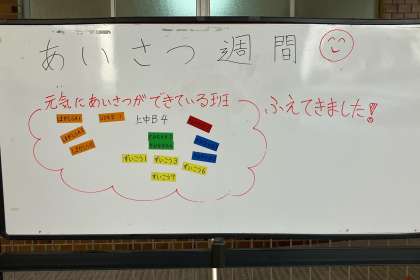 本日、最終日です。立ち止まって、あいさつする子どもたちが、初日より増えました。