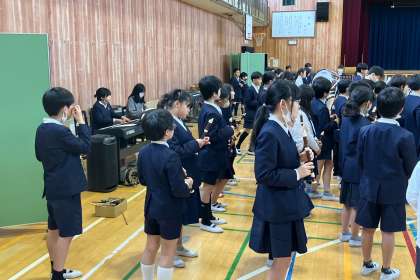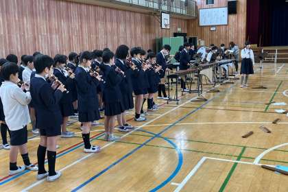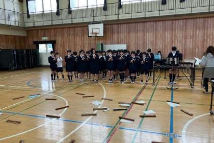 卒業生を送る会で披露する曲を練習しています。